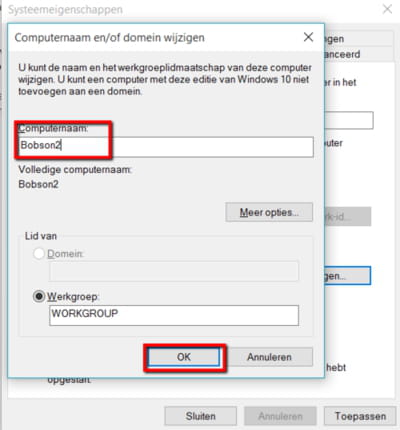 Wijzigen te klikken kun je de naam van je computer aanpassen onder