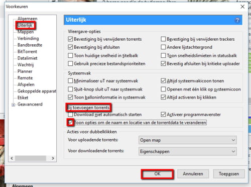 OK te klikken om te bevestigen. Vanaf nu kun je bij iedere nieuwe download weer gewoon zelf aangeven waar je de bijbehorende torrentbestanden wilt opslaan.