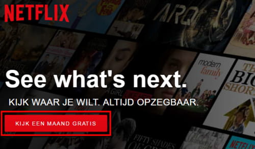 website van Netflix. Hier aangekomen klik je op de grote rode knop met de tekst